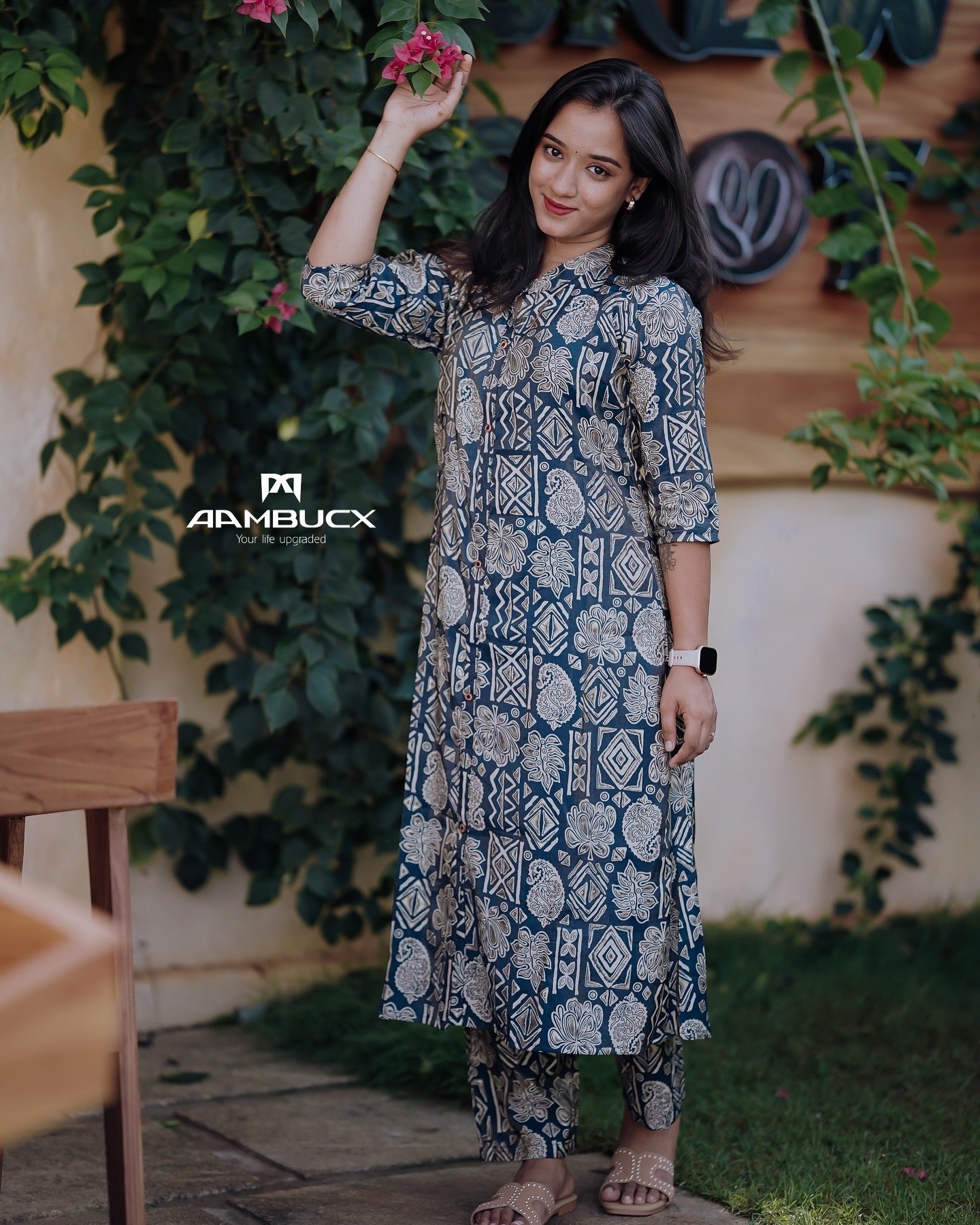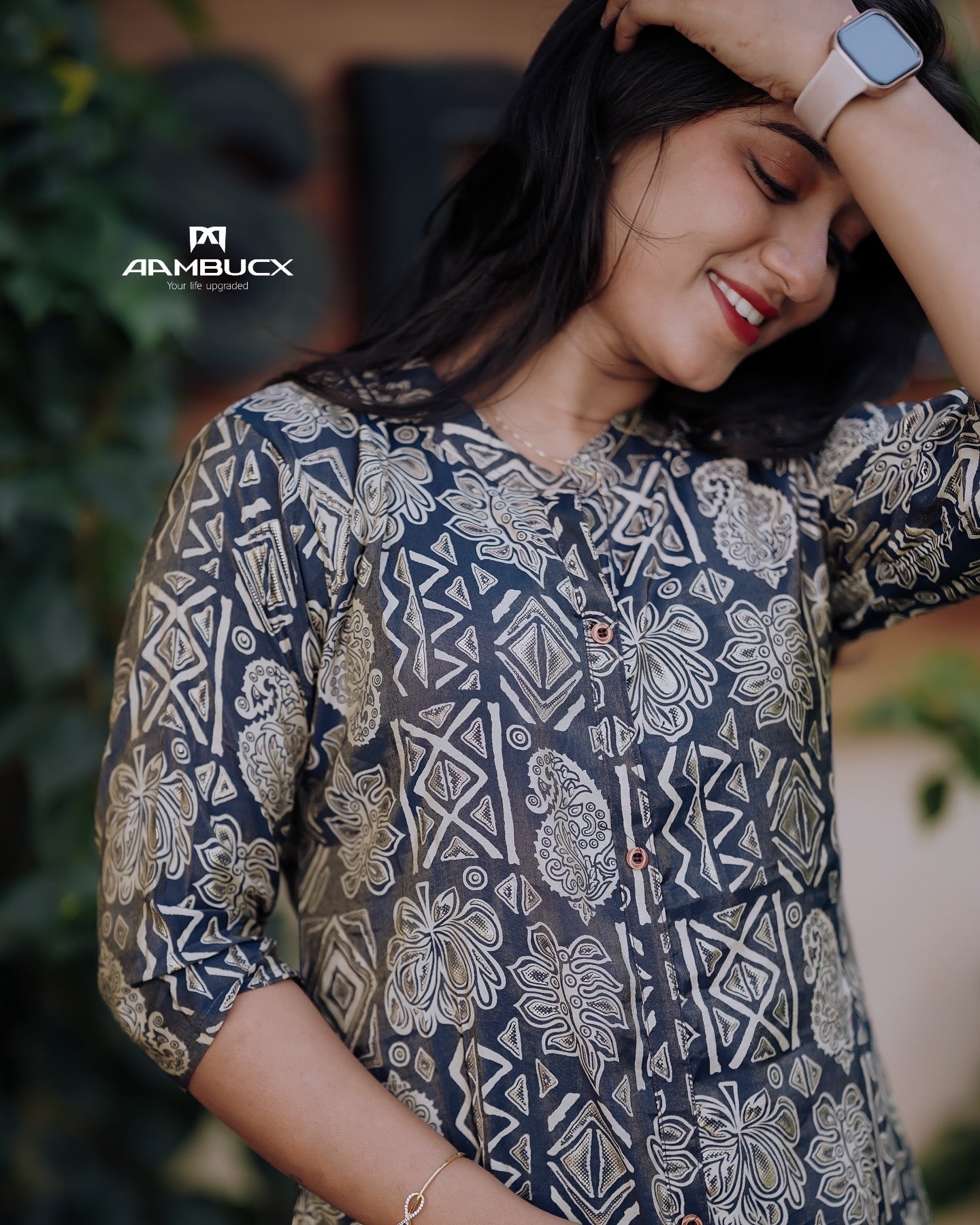 Step into effortless elegance with our navy blue & White Rayon Kurti Set from Aambucx Clothing ✨