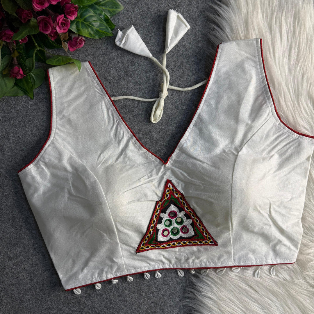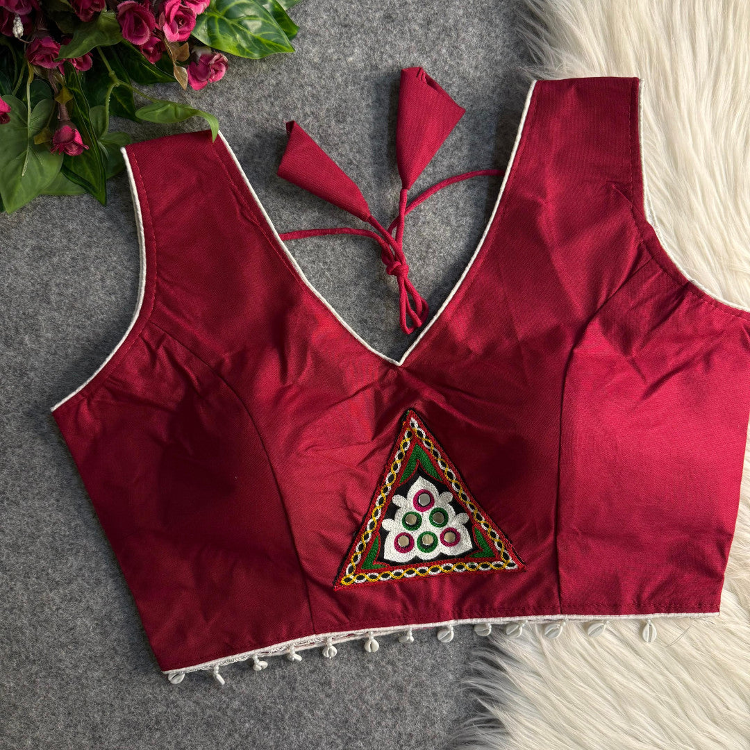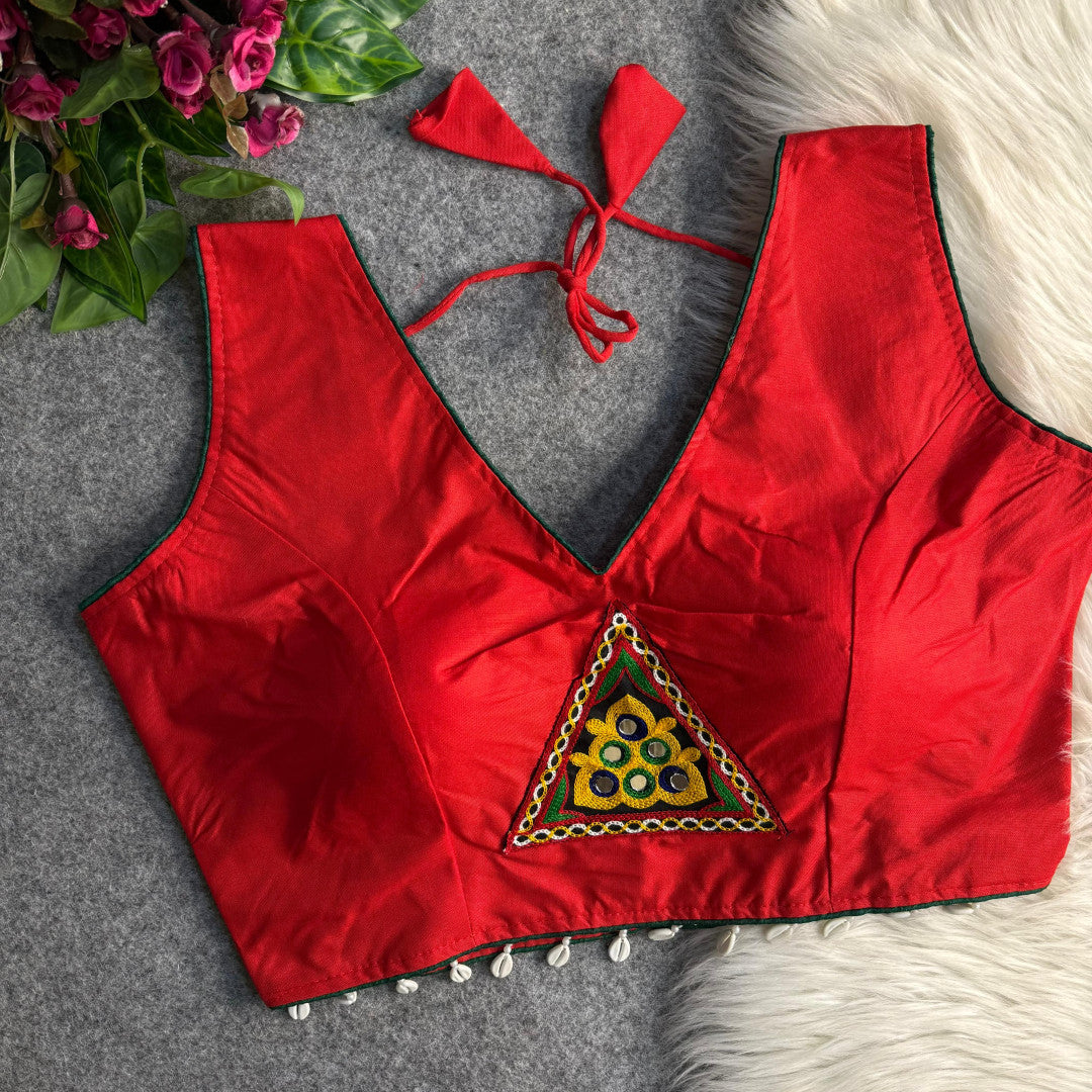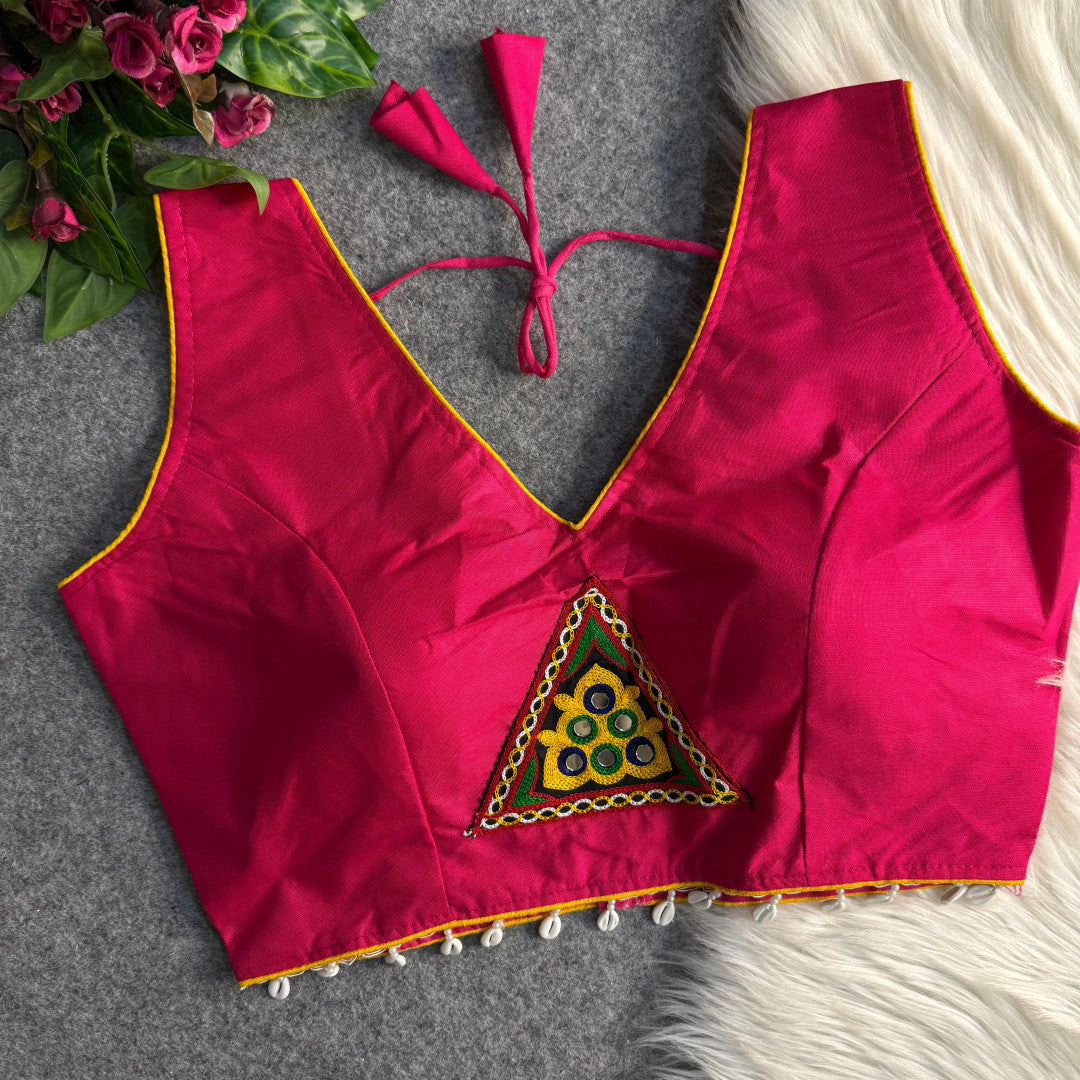 Fabric: Rayon cotton Stitch type: Full stitched Work: Mirror and embroidery Sleeves size: sleeveless Size: Free size 40 inch ready alter up to 42 inch Care : Dry clean only